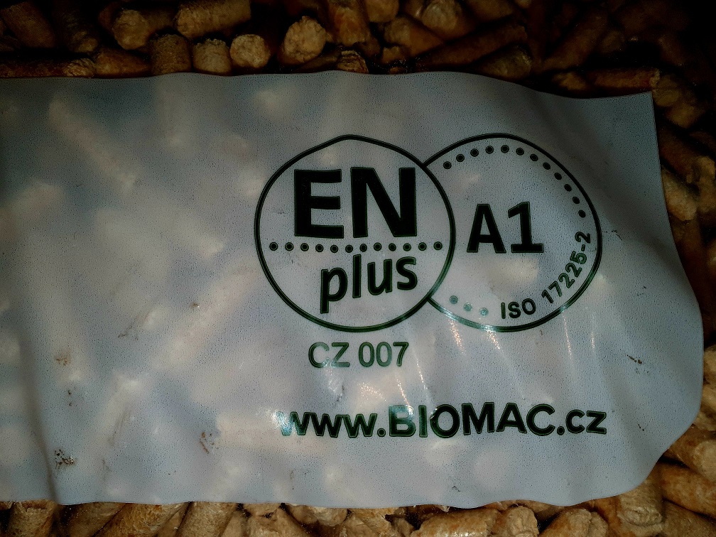 PELLET BIOMAC – certyfikowany! Wartość opałowa – ≥ 4,6 kWh/kg Wilgotność – ≤ 10% Średnica – 6 mm Popiół – ≤ 0,7 % 1 paleta = 70worków(1050kg)